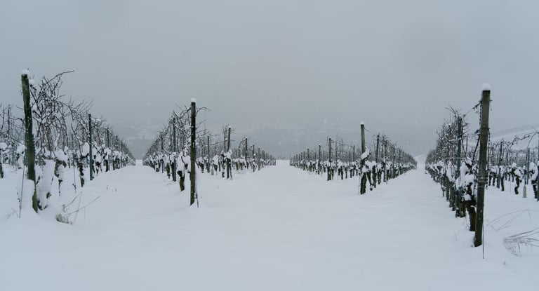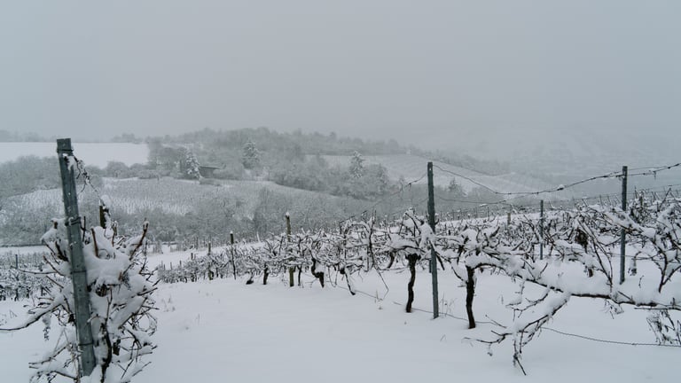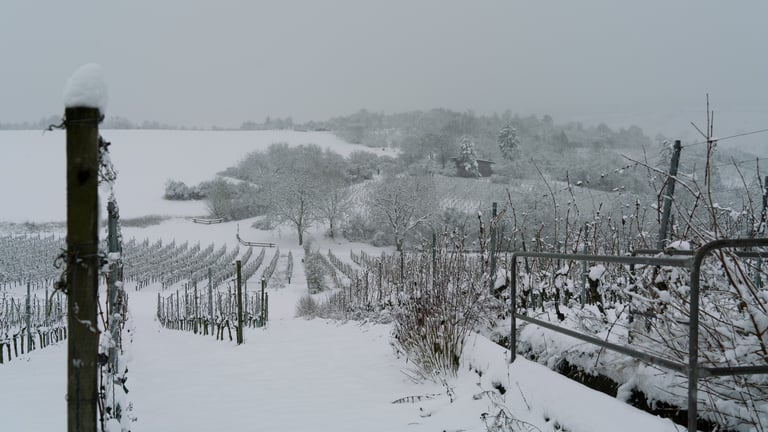 Verschneite Weinberge von Würzburg